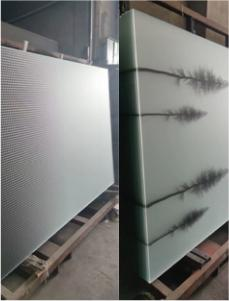 Acid Etched Glass – The surface of flat glass is treated with water-based acids to create a smooth translucent appearance or an engraved surface.